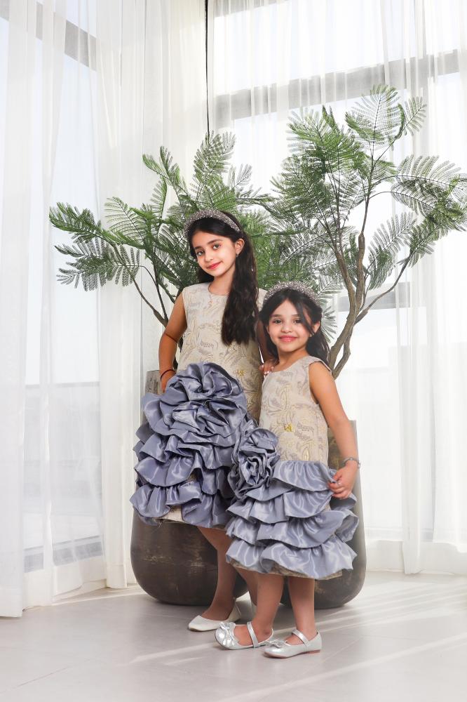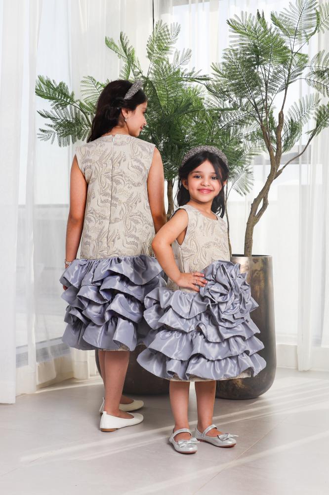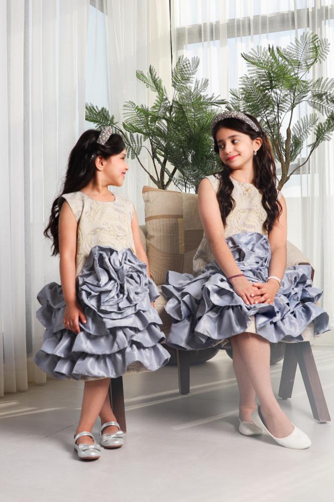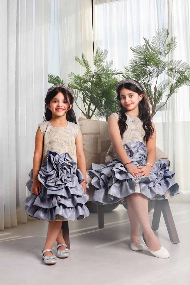 الفستان يعكس مزيجاً من الأناقة والبساطة ويمنح الطفلتين إطلالة مميزة ومتفردة.
