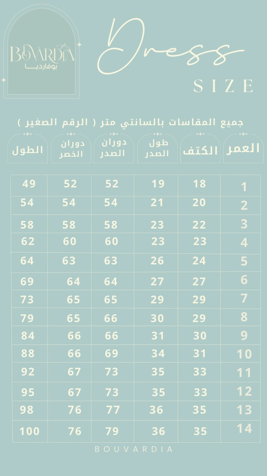 *الرجاء الاطلاع على جدول المقاسات :